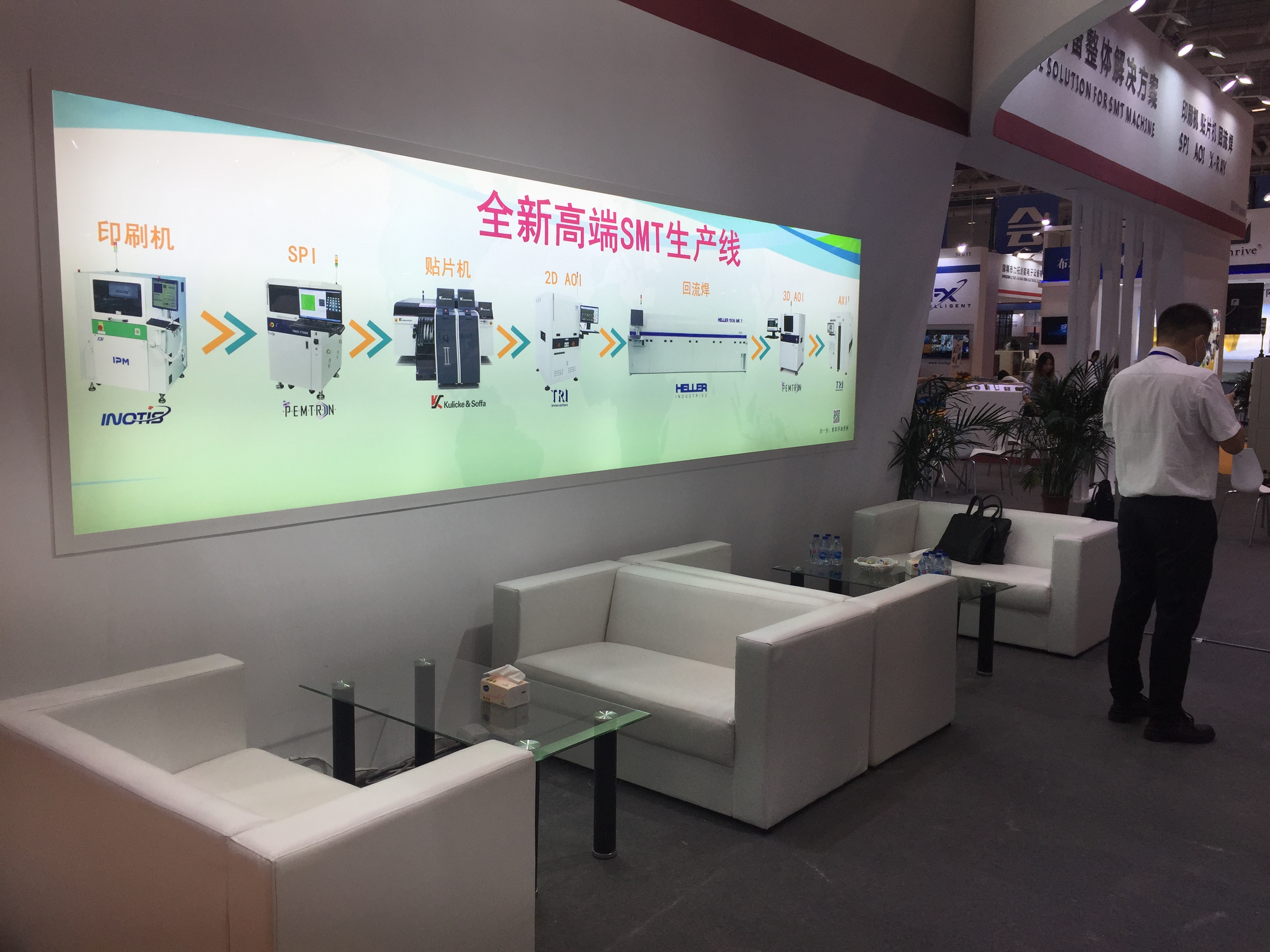 展會現(xiàn)場人氣爆棚,觀眾參觀熱氣度高漲,我司本次展出了高端SMT一站式解決方案設(shè)備:Inotis X6L印刷機、KY8030 2代SPI、ASM(西門子)X4IS和D4貼片機、VI 5K在線AOI、以及EMS智慧工廠沙盤,憑借我司多年品牌知名度和現(xiàn)場工程技術(shù)銷售的講解,現(xiàn)場聚集了大量粉絲觀眾,人流涌動熱鬧非凡,托普科實業(yè)用實力贏得了客戶認可和贊譽。