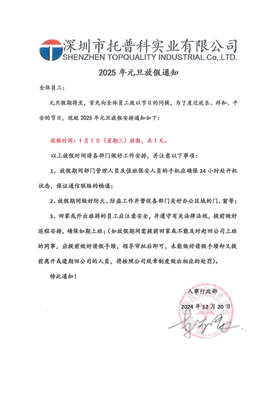 2025年元旦放假通知
